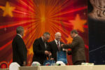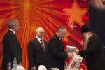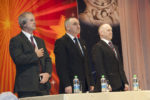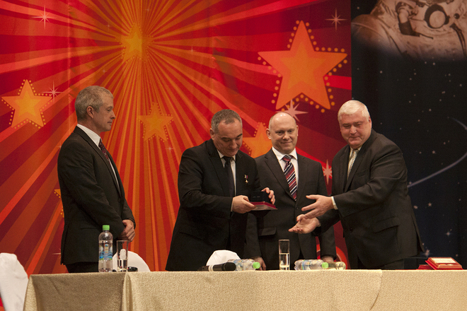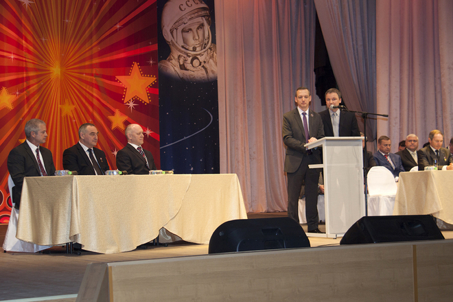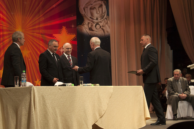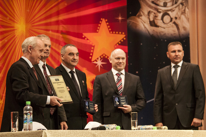 На встрече присутствовали члены Президиума «ОФИЦЕРОВ РОССИИ», которые тепло поздравили космонавтов. Кроме того, они вручили Александру Скворцову и Олегу Артемьеву медали «За офицерскую честь», а Стивену Свонсону – благодарность от нашей организации.