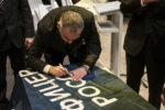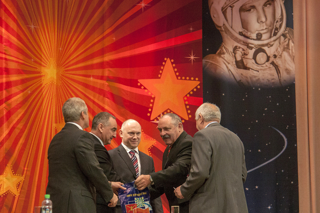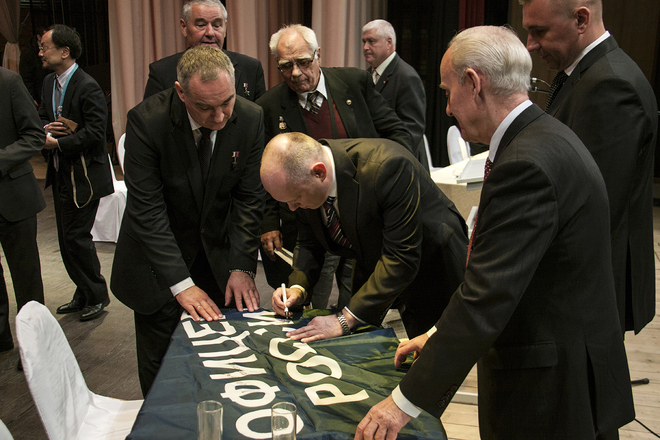 Космонавты, в свою очередь, оставили свои автографы на флаге нашей организации.