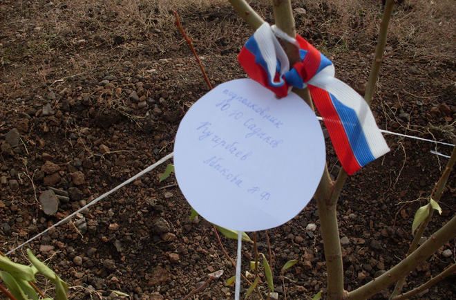 Всего высажено на аллеи 150 саженцев липы, березы, ивы, боярышника, клена, сирени и др. На каждое деревце прикреплена символика «ОФИЦЕРОВ РОССИИ» с личными подписями участников.