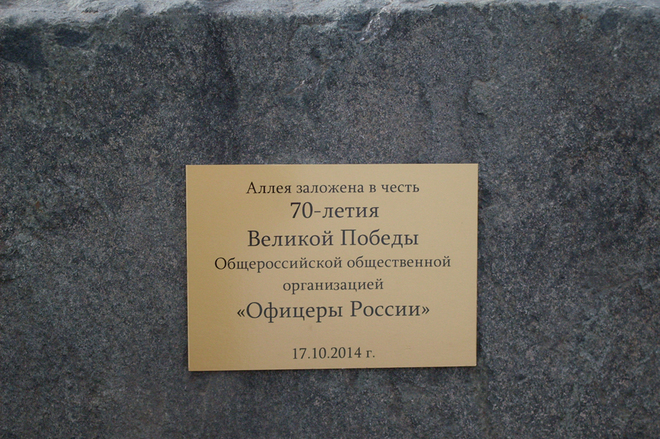 17 октября по инициативе регионального отделения «ОФИЦЕРОВ РОССИИ» Оренбургской области при поддержке администраций города и Северного округа в честь 70-летия Победы в Великой Отечественной войне заложена аллея «ОФИЦЕРОВ РОССИИ» и установлен камень с памятной табличкой.