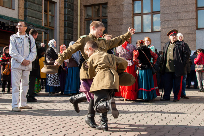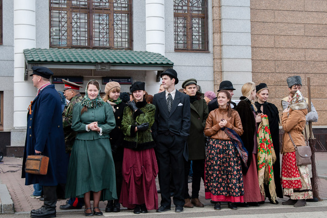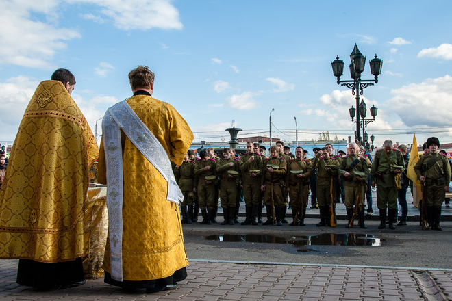 В ходе реконструкции на вокзале был показан момент прощания уходящих на фронт сибирских стрелков и казаков с родственниками и земляками, прозвучали слова напутствия городского головы, состоялось церковное богослужение.