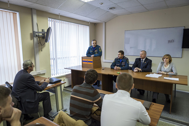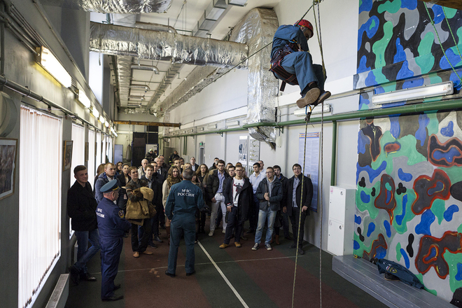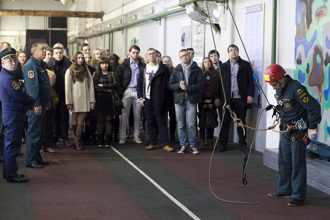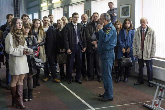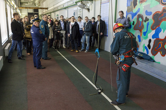 Студенты и представители «ОФИЦЕРОВ РОССИИ» ознакомились с условиями работы спасателей, осмотрели их тренировочные залы, снаряжение и вышку.