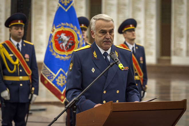 Заместитель директора ФСИН России Александр Сапожников вручил знамя врио начальника столичного УФСИН Анатолию Тихомирову. Александр Сапожников напомнил, что на протяжении многих веков знамя является неувядаемой святыней – символом чести, доблести и славы.