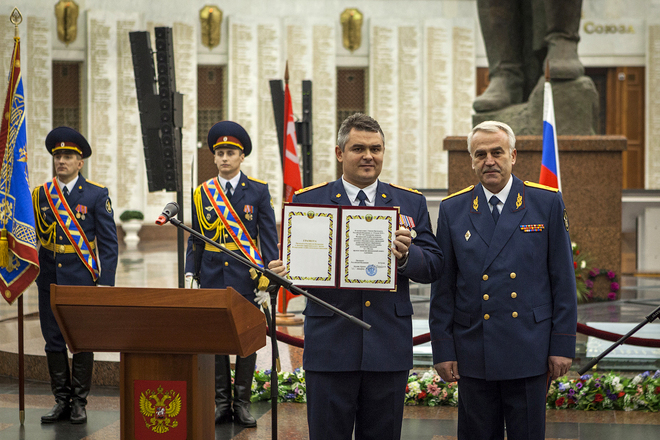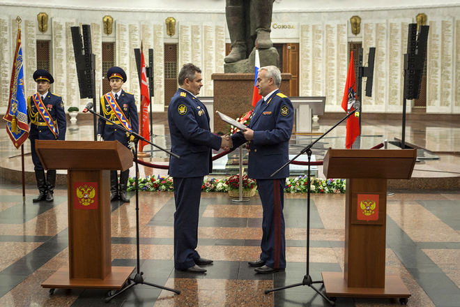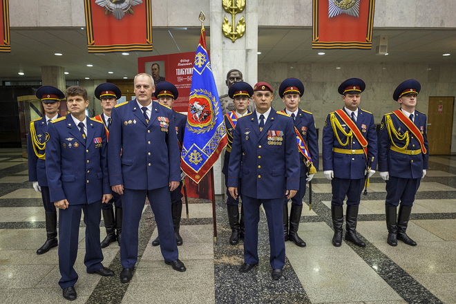 В Центральном зале музея Великой Отечественной войны прошла церемония вручения знамени УФСИН России по Москве. На церемонии присутствовали сотрудники территориального органа, ветераны уголовно-исполнительной системы и почетные гости. «ОФИЦЕРОВ РОССИИ» представляли председатель Президиума Антон Цветков и Герой России Сергей Нефедов.