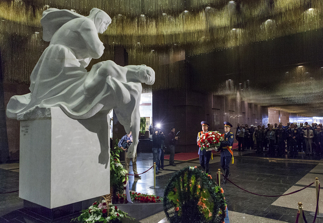 Завершилась церемония возложением цветов к обелиску в Зале памяти и скорби.