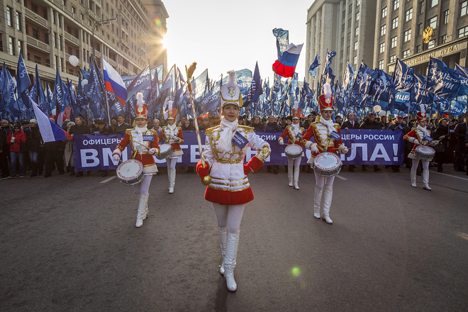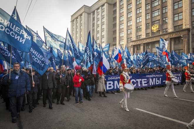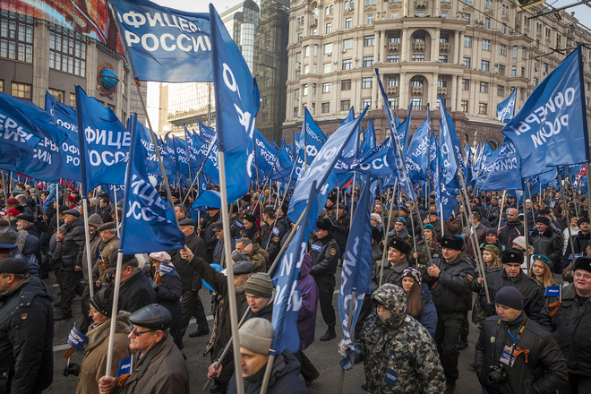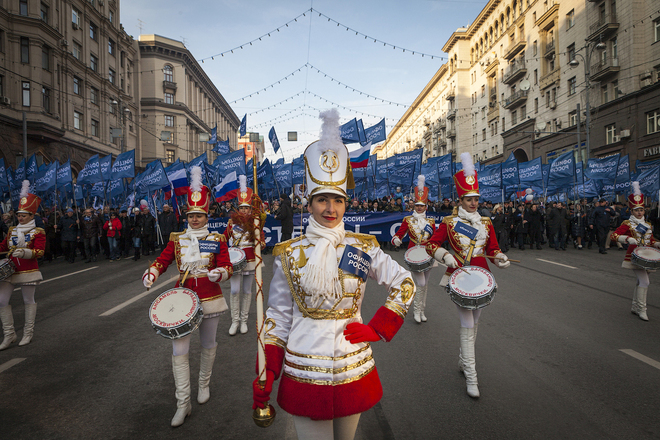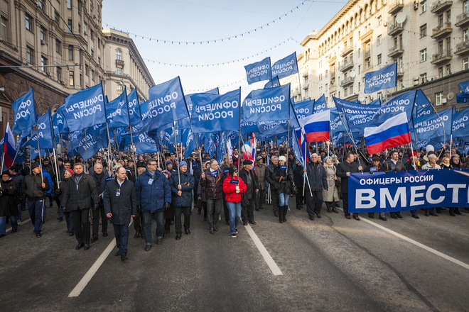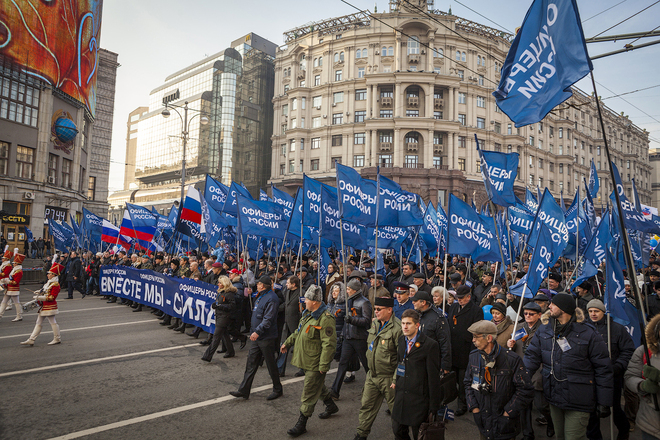 В Москве, 4 ноября, в День народного единства прошла одна из самых масштабных акций «Мы едины», которая началась шествием по Тверской улице, а завершилась митингом на Театральной площади. Над многотысячной колонной развевались бесчисленные флаги партий, регионов, общественных организаций.