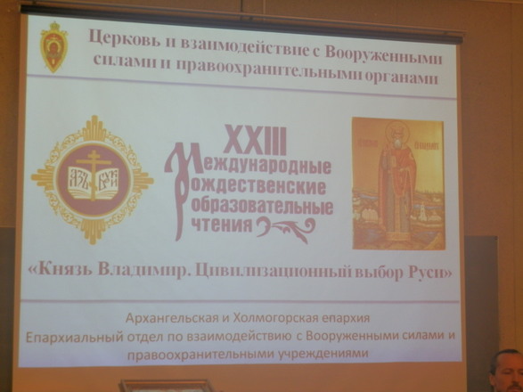 В северодвинском Центре культуры и отдыха молодежи в рамках регионального этапа Чтений «Церковь и взаимодействие с Вооруженными силами и правоохранительными органами» состоялся круглый стол с участием духовенства Архангельской митрополии, представителей воинских частей и подразделений Минобороны и МВД в Архангельской области, ученых, краеведов, историков, общественных деятелей, жителей области.