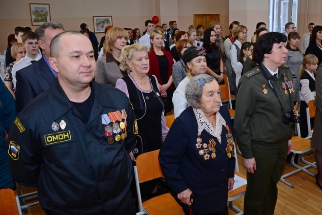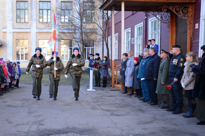 На здании школы открыли мемориальную доску. Собравшихся поздравили заместитель начальника ГУ МЧС России по Вологодской области Александр Яценко, начальник Управления образования администрации города Вологда Алла Косьева.