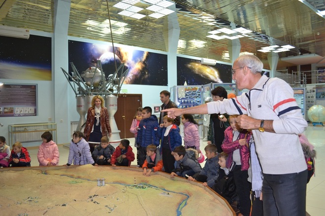 В тот же день руководитель регионального отделения Сергей Скотников и один из самых активных членов отделения Роман Папин организовали как всегда интересную и познавательную экскурсию (это стало уже традиционным мероприятием в жизни отделения) для байконурских школьников.
