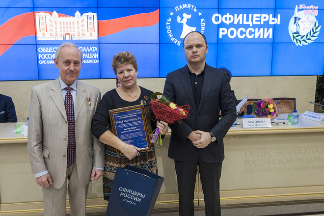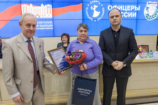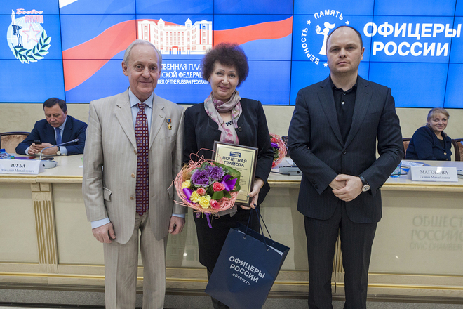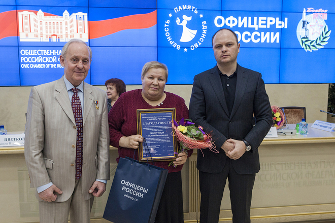 Выступили председатель организации семей погибших защитников Отечества Татьяна Рубан, председатель Президиума «ОФИЦЕРОВ РОССИИ» Антон Цветков, заместитель председателя организации «Боевое братство» Николай Шуба, руководитель Центра социальной и правовой защиты «ОФИЦЕРОВ РОССИИ» Сергей Ермоленко и др.