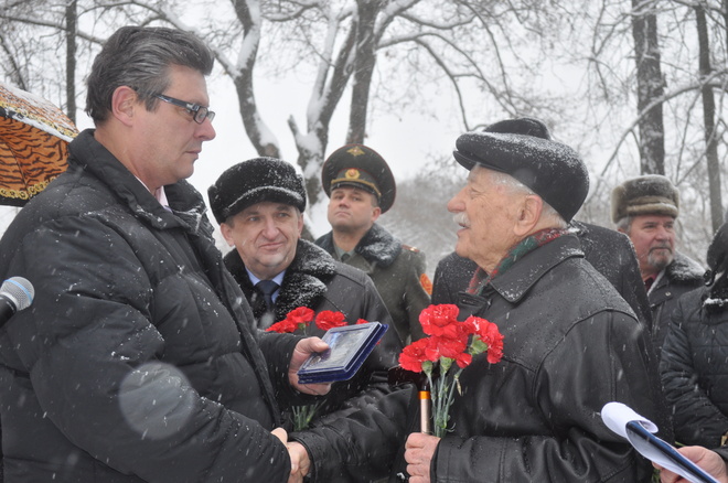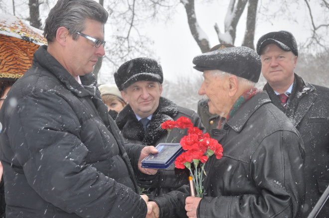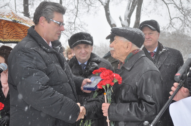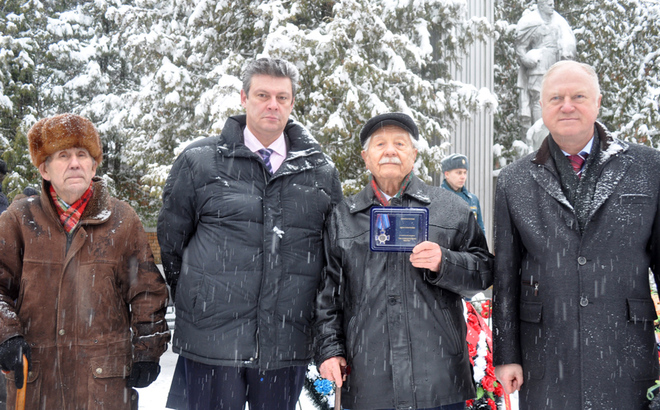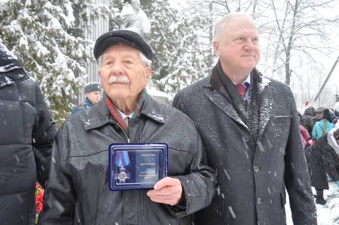 В ходе митинга, который проходил у братского захоронения воинов, член Президиума «ОФИЦЕРОВ РОССИИ» Владимир Федоров вручил медаль «За офицерскую честь» участнику Великой Отечественной войны, освобождавшему поселок, Павлу Андреичеву.