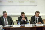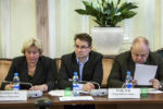На круглый стол были приглашены члены ОП РФ, представители ГУТ МВД России, Росжелдора, Ространснадзора, общественных организаций и эксперты. «ОФИЦЕРОВ РОССИИ» представляли председатель Президиума, председатель Комиссии ОП по общественной безопасности Антон Цветков и член ОП, член Президиума «ОФИЦЕРОВ РОССИИ» Дмитрий Галочкин.