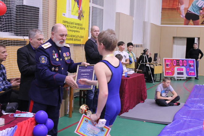 Награждение провели руководитель Федерации вольной борьбы в Северодвинске Николай Кувшинский и представитель регионального отделения «ОФИЦЕРОВ РОССИИ» Николай Чесноков.