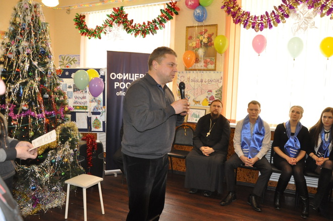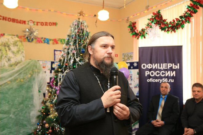 Затем слово было предоставлено члену организации «ОФИЦЕРЫ РОССИИ», руководителю отдела по церковной благотворительности и социальному служению, ректору православного детского центра «ФОРПОСТ», протоиерею Александру Азаренкову. Он, в свою очередь, подчеркнул, что эта дата, 19 декабря, была выбрана неслучайно. Именно в этот день отмечается великий православный праздник – День Святого Николая Чудотворца. Отец Александр пожелал ученикам школы-интерната, чтобы Святой Николай Чудотворец стал их покровителем и защитником, оберегая их от всех тягостей и невзгод.