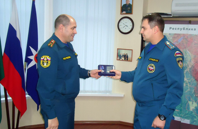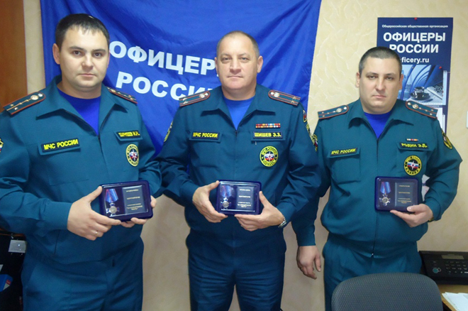 30 декабря начальник ГУ МЧС России по Республике Адыгея полковник Султан Хацуков и руководитель исполкома регионального отделения «ОФИЦЕРОВ РОССИИ» Адыгеи Геннадий Мельников вручили медали «За офицерскую честь» офицерам главка, наиболее отличившимся в работе общественной организации.