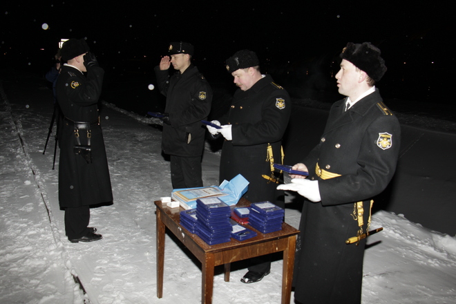 Орденом «За офицерскую честь» награжден командир экипажа тяжелого атомного подводного крейсера ТК-20 «Северсталь» капитан 2 ранга Алексей Жиганов. Медали «За офицерскую честь» были вручены старшему помощнику командира экипажа тяжелого атомного подводного крейсера ТК-20 «Северсталь» капитану 3 ранга Андрею Емельянову и начальнику службы радиационной, химической и биологической защиты экипажа тяжелого атомного подводного крейсера ТК-20 «Северсталь» капитан-лейтенанту Роману Самухину.