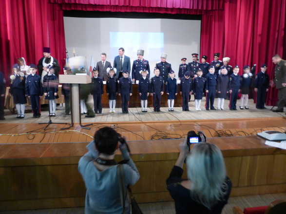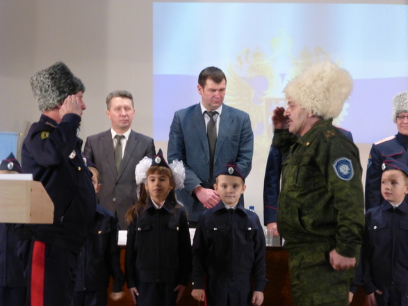 В ходе проведения Большого праздничного круга учащиеся 1 класса средней школы № 2 г. Красноармейска в торжественной обстановке и под бурные аплодисменты родителей, наставников, старейшин и казаков приняли присягу.