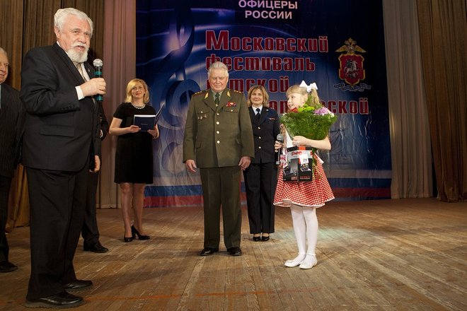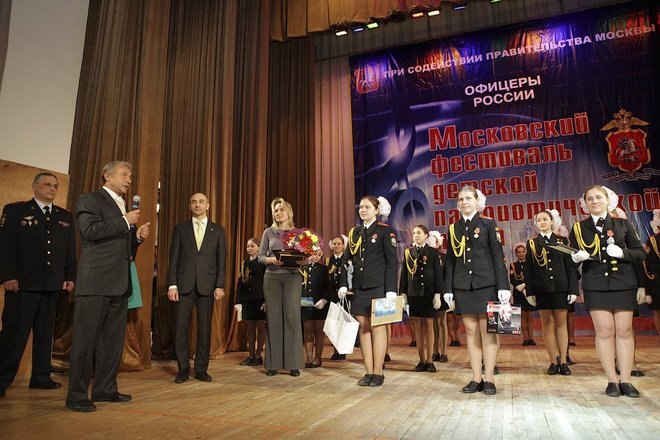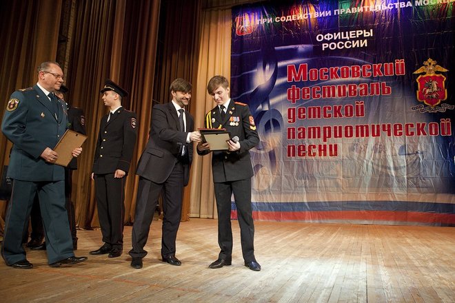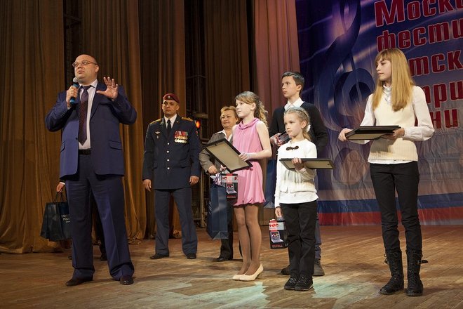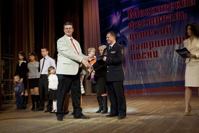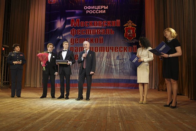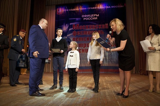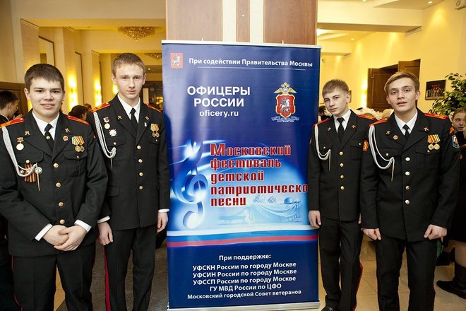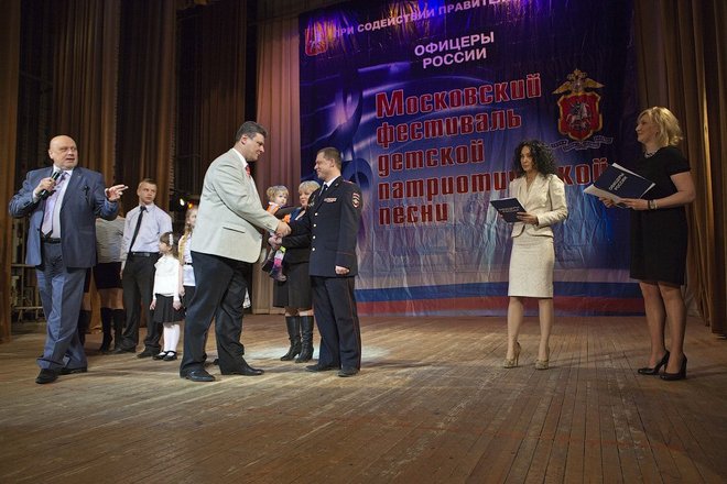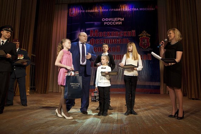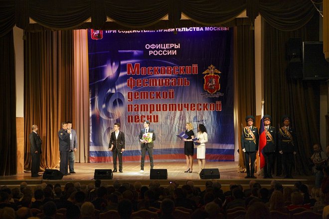 В преддверии Дня Победы, 10 апреля, в Культурном центре столичной полиции состоялся грандиозный гала-концерт победителей пятого, юбилейного, Московского фестиваля детской патриотической песни на премию «ОФИЦЕРЫ РОССИИ». Мероприятие ежегодно организует и проводит Общероссийская организация «ОФИЦЕРЫ РОССИИ» при содействии ГУ МВД по Москве, столичных УФССП, УФСКН, УФСИН, ГУ МЧС, правительства Москвы.