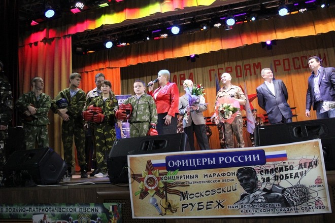 В городах Подмосковья продолжается концертный марафон военно-патриотической песни «Московский рубеж», посвященный 70-й годовщине Победы в Великой Отечественной войне. Это проект регионального отделения «ОФИЦЕРОВ РОССИИ» Московской области.