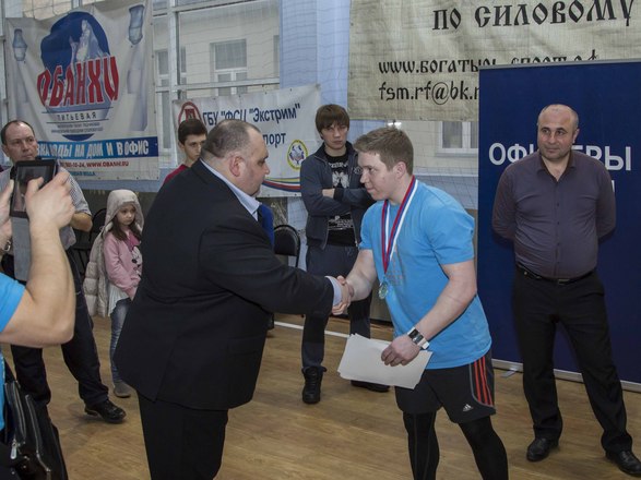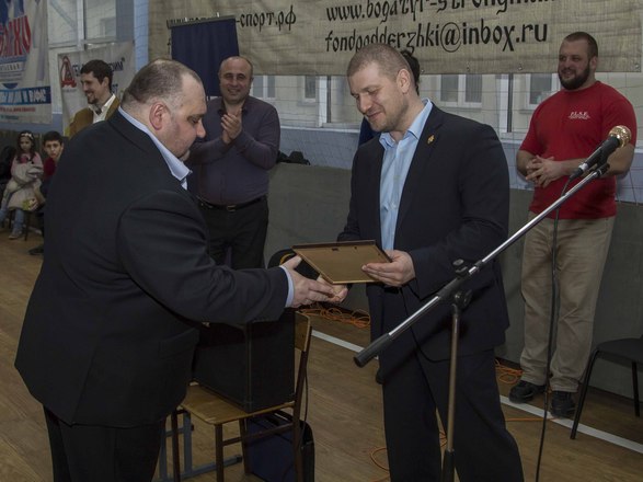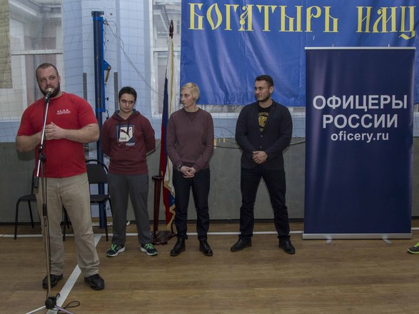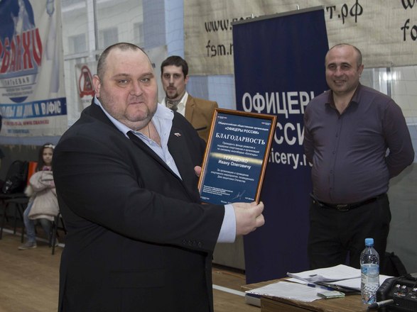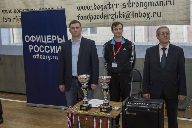 «ОФИЦЕРОВ РОССИИ» представлял член Президиума, ветеран группы антитеррора «Альфа» майор запаса Игорь Шевчук, который вручил от нашей организации благодарности организаторам мероприятия. Одним из основных организаторов стал Фонд развития и поддержки спортсменов и организаций по силовому многоборью «Богатырь».