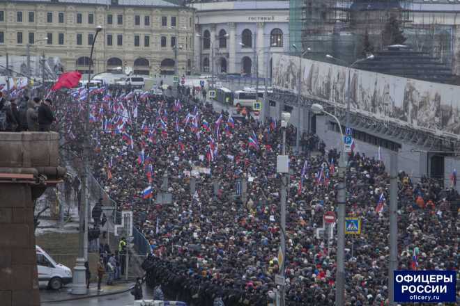 1 марта в Москве состоялось траурное шествие памяти Бориса Немцова. Участники марша прошли от Китайгородского проезда до Большого Москворецкого моста, где в ночь на 28 февраля был убит оппозиционный политик.