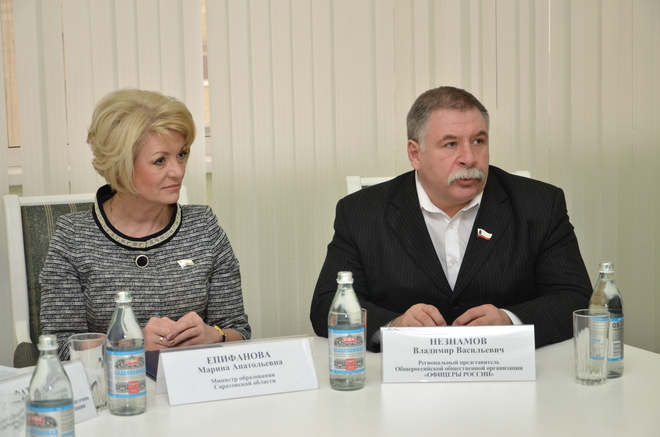 «ОФИЦЕРОВ РОССИИ» на церемонии представляли председатель президиума саратовского отделения Максим Фатеев и член Совета по развитию региональной деятельности организации Владимир Незнамов, а министерство образования – министр Марина Епифанова.