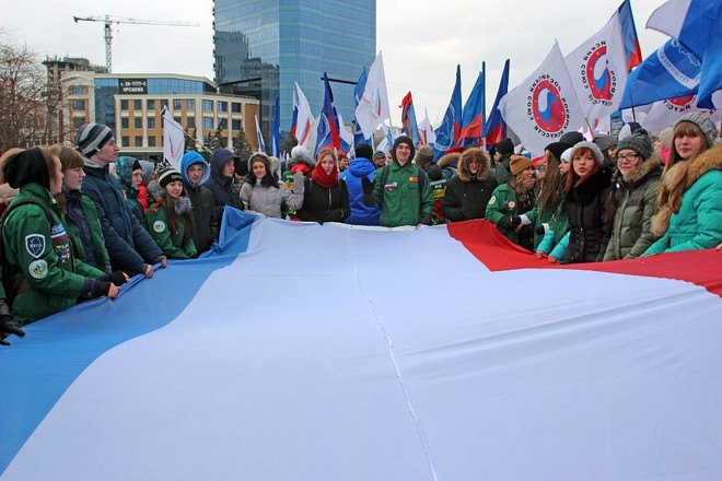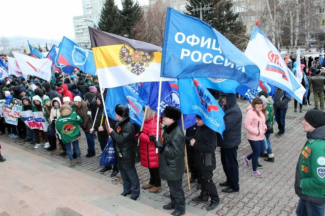 18 марта в Красноярске состоялся митинг-концерт «Мы вместе», в котором приняли участие несколько тысяч человек.