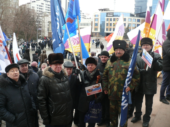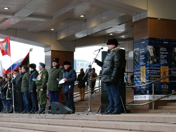 Руководитель исполкома регионального отделения «ОФИЦЕРОВ РОССИИ» полковник запаса Сергей Гонюхов, который также выступил на митинге, рассказал собравшимся о том, как год назад проходил автопробег «Сибиряки – Крыму». Этот автопробег с гуманитарной помощью для крымчан был организован нашим отделением, он стартовал 18 марта 2014 года из Красноярска. За восемь дней участники пробега проехали более шести тысяч километров, побывали в 15 регионах России и в каждом городе сибиряков встречали тепло.