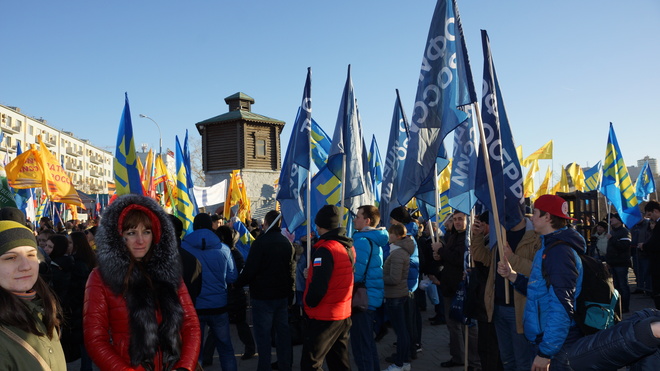 18 марта в Екатеринбурге прошел митинг в поддержку наших соотечественников, проживающих на Украине и в Крыму, и в поддержку результатов референдума о воссоединении с Россией.