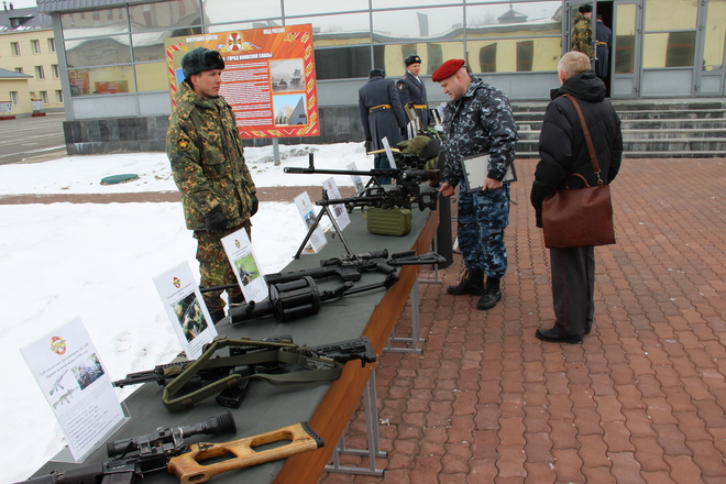 Гости и участники торжественных мероприятий возложили цветы к монументу павшим военнослужащим, смогли ознакомиться с образцами военной техники, вооружением, техническими средствами разведки, инженерными средствами, медицинским оборудованием и средствами связи, которые используются внутренними войсками.