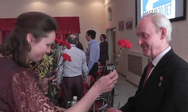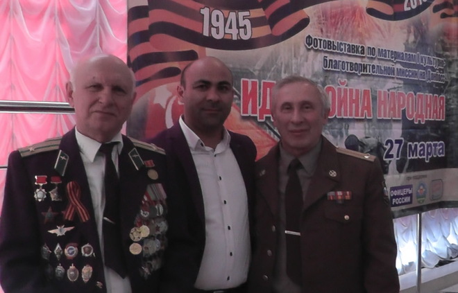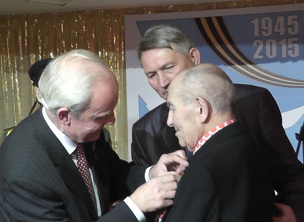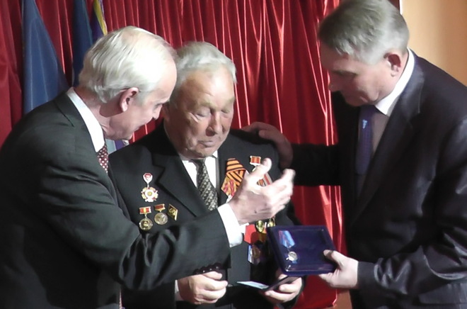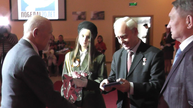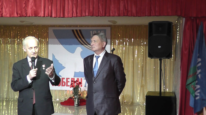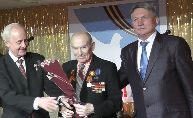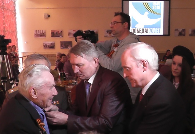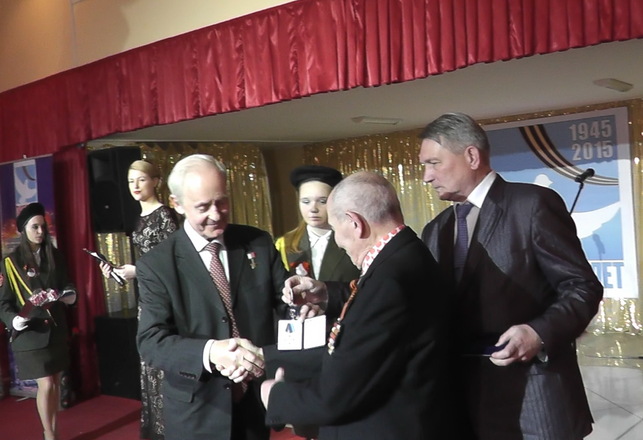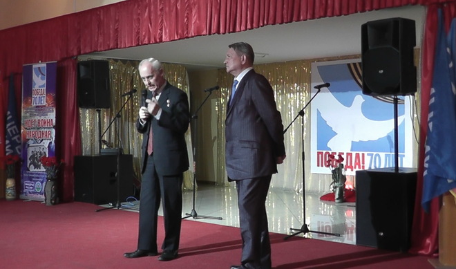 На торжественной церемонии руководство района вручило юбилейные медали «70-лет Победы» и грамоты ветеранам войны и малолетним узникам фашизма. От нашей организации с приветственным словом выступили руководитель исполкома регионального отделения «ОФИЦЕРОВ РОССИИ» Московской области Юрий Чмутин, председатель Совета мужества и отваги нашей организации, Герой России Сергей Нефедов. Они вручили медали «Офицерская честь» ряду офицеров.