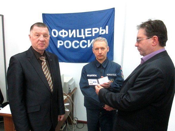 Удостоверения новым членам организации вручил депутат Совета депутатов городского округа Подольск, председатель Подольского местного отделения «ОФИЦЕРОВ РОССИИ», член правления «Боевого братства», участник двух чеченских кампаний полковник запаса Валерий Файзулин.