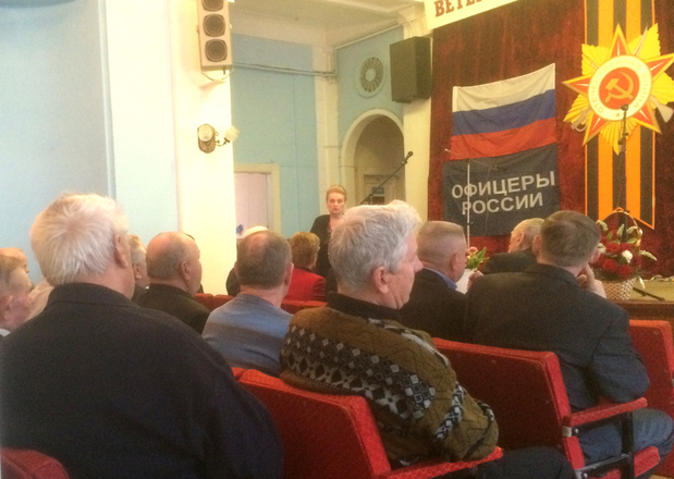 На праздничную встречу в Дом ветеранов Автозаводского района Нижнего Новгорода были приглашены ветераны силовых структур, участники боевых действий, действующие сотрудники правоохранительных органов, учащиеся школы №12.