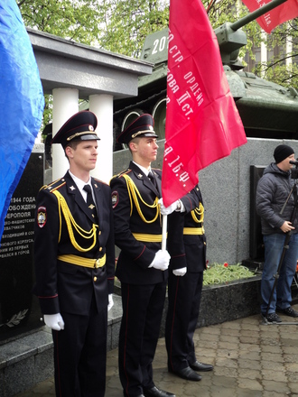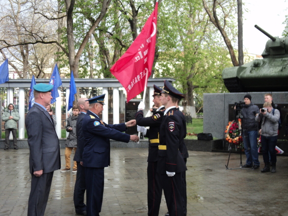 Автопробег встречали руководители Городского совета Симферополя, депутаты Совета, ветераны Великой Отечественной войны, жители города. В рамках мероприятия состоялось торжественное вручение копии Знамени Победы почетному караулу курсантов Симферопольского филиала Краснодарской Академии МВД, копии ордена Отечественной войны администрации Симферополя и возложение цветов к памятнику танку-освободителю.