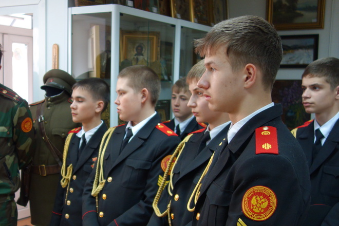 Первыми посетителями выставки стали кадеты Красноярского кадетского корпуса им. А.И. Лебедя.