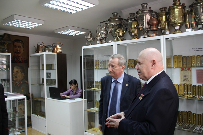 С кратким историческим обзором истории по малоизвестным фактам эволюции погон в Российской армии перед посетителями выставки выступил член президиума регионального отделения, полковник милиции в отставке Валерий Дайн.