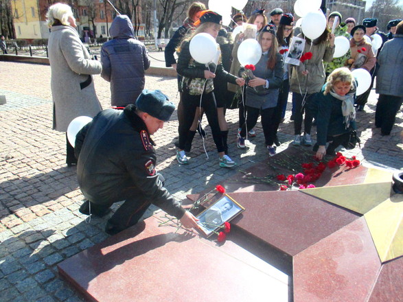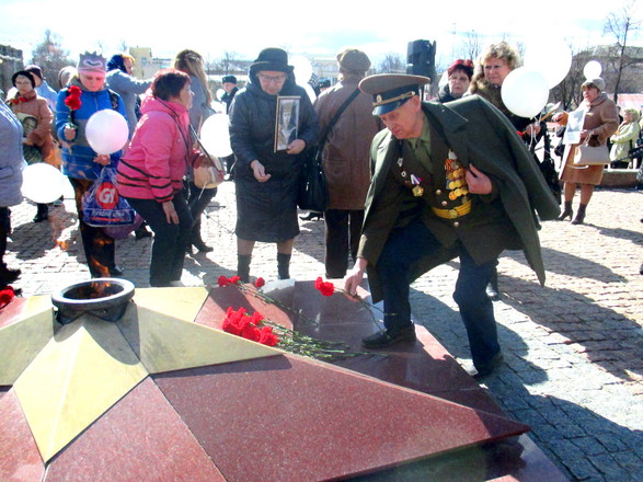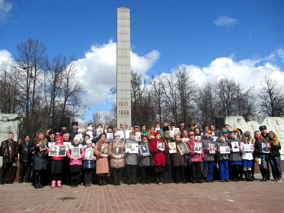 В Подольске участники акции собрались на площади Славы у Вечного огня с портретами родных, на чью жизнь выпало испытание войной. Они принесли фотографии погибших и вернувшихся с войны, тех, кто трудился в тылу – всех, кто был причастен к Великой Победе.