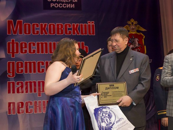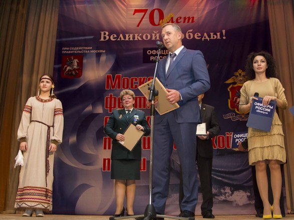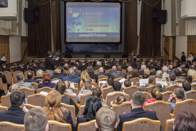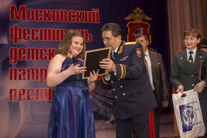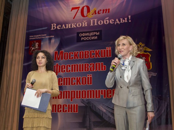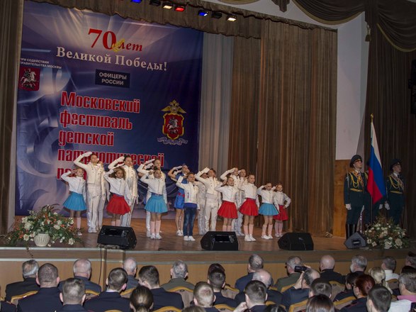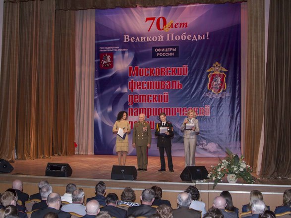 15 апреля в Культурном центре ГУ МВД России по г. Москве состоялся заключительный гала-концерт VII Московского фестиваля детской патриотической песни на премию «ОФИЦЕРЫ РОССИИ» с участием финалистов отборочных туров. В этом году он был посвящен 70-летию Победы в Великой Отечественной войне.