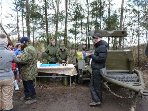 После работы все собрались у полевой кухни и под песни военных лет отведали солдатской каши.