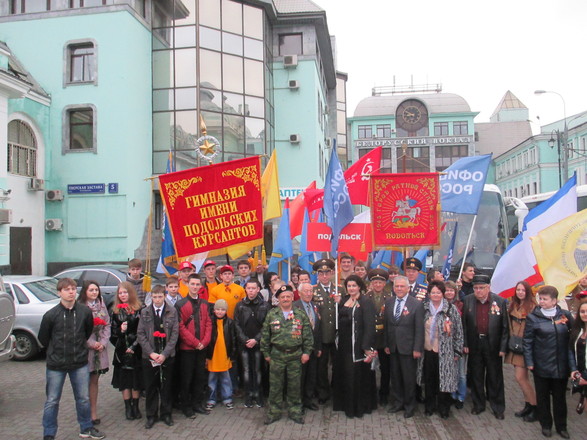 Завершился автопробег 4 мая в Подольске митингом у памятника подольским курсантам – защитникам Москвы от немецко-фашистских захватчиков. И в этот же день участники акции посетили школу №18, где была открыта мемориальная доска подольским курсантам.