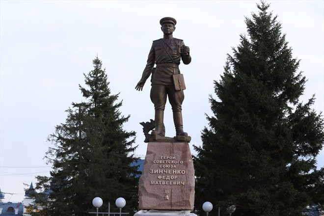 70 лет назад бойцы под командованием Федора Матвеевича взяли рейхстаг. Сын простого крестьянина из Кривошеинского района Томской области стал первым комендантом побежденного сердца Берлина. На открытие памятника из Украины приехала дочь полковника Зинченко, а также собрались многочисленные родственники со всей Томской области. Поклониться памяти Федора Матвеевича Зинченко пришли сотни томичей с георгиевскими лентами и гвоздиками.