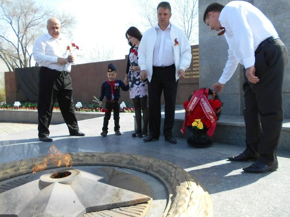 Руководитель исполкома регионального отделения «ОФИЦЕРОВ РОССИИ» Алексей Чистяков, заместитель руководителя исполкома Михаил Макаров и помощник руководителя исполкома по гражданско-патриотическому воспитанию Сергей Агафонов торжественно возложили венки в мемориальном комплексе «Вечный огонь» и выставочном комплексе «Салют, Победа!».
