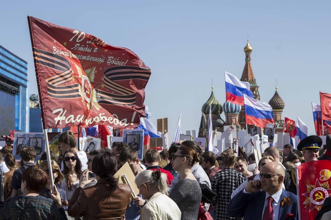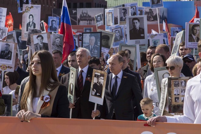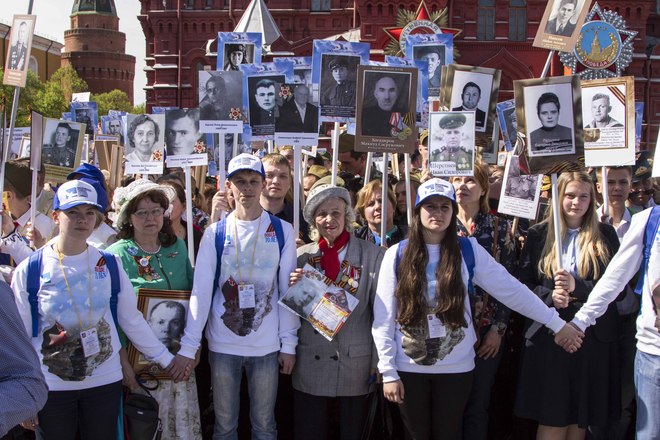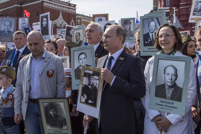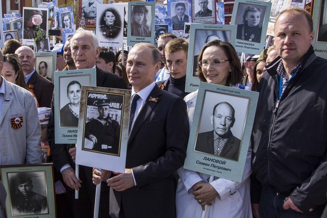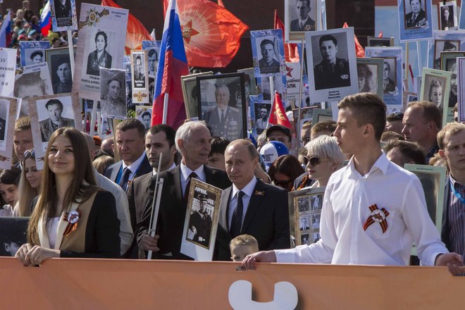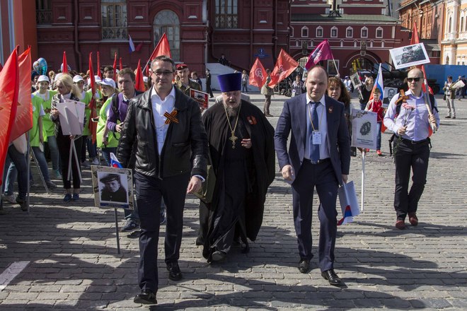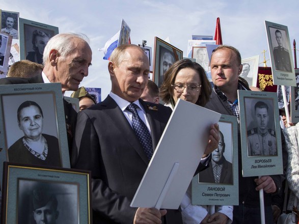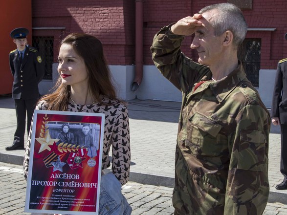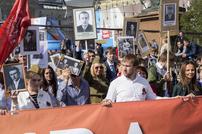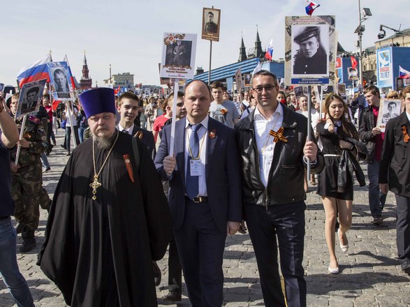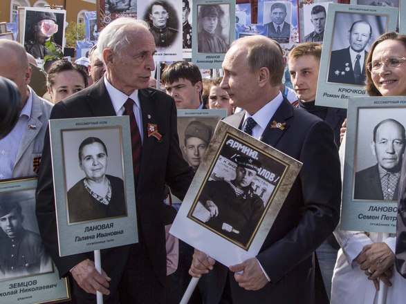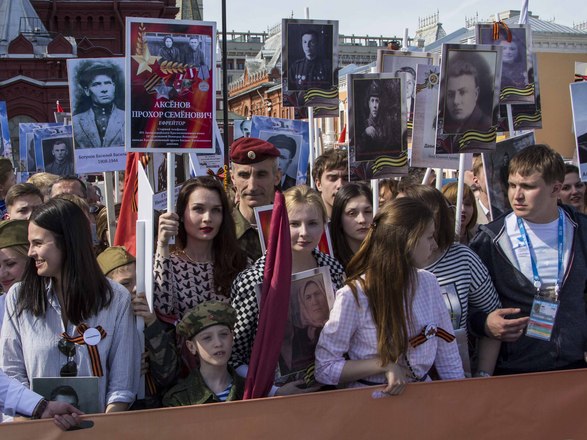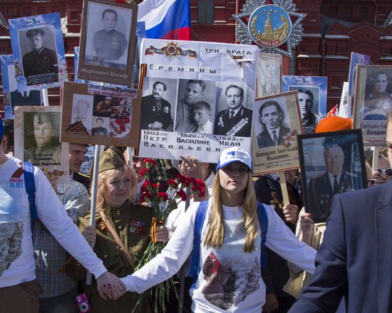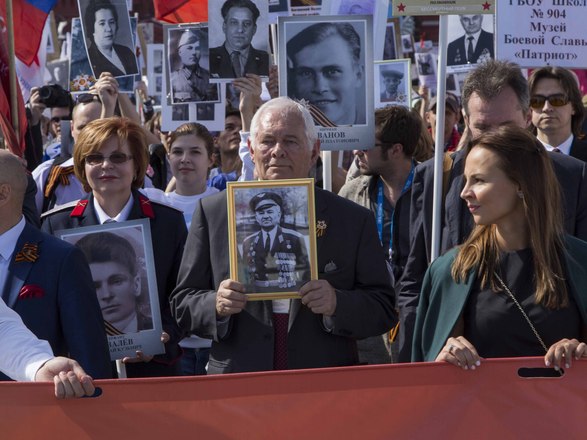 В День Победы в России прошла акция «Бессмертный полк», на которую по всей стране вышли почти полтора миллиона россиян. В марше приняли участие потомки воинов, защитивших мир от фашизма. На Красной площади в Москве в общей колонне с портретом отца-фронтовика шел президент России Владимир Путин. В едином строю с народом были члены Президиума и члены нашей организации.