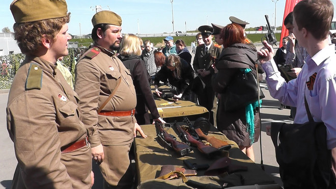 На площади перед «Крокусом» была воссоздана атмосфера 1940-х годов, развернута выставка книг на военную тематику, выступали артисты. Затем в зале прошел праздничный концерт.