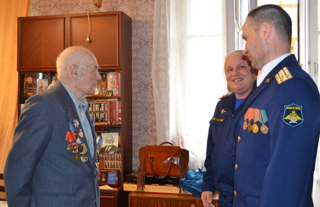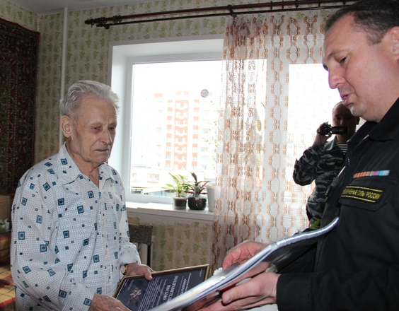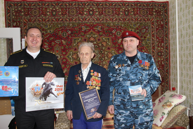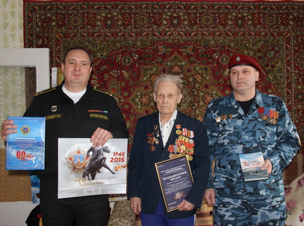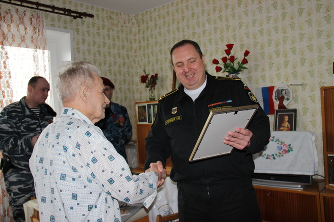 Региональное отделение «ОФИЦЕРОВ РОССИИ» в Архангельской области совместно с охранным предприятием «Статус – А» установили пластиковые окна ветерану Великой Отечественной войны Александру Мальцеву. А в преддверии Дня Победы член исполкома регионального отделения Аркадий Басунов, начальник охраны «Статуса – А» Алексей Разумов, заместитель начальника Государственного центрального морского полигона Минобороны РФ по работе с личным составом капитан 1-го ранга Евгений Кузнецов и офицер службы защиты государственной тайны в∕ч 09703 старший лейтенант Виктор Седорин поздравили ветерана с праздником. Гости вручили Александру Константиновичу поздравительное письмо и памятные подарки. Во время чаепития ветеран рассказал о своей жизни, семье, о том, как он в 17 лет ушел на фронт, воевал на Дальнем Востоке.