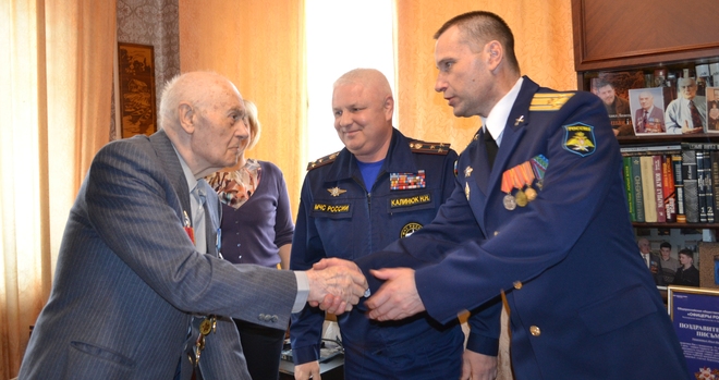 Члены Президиума регионального отделения – начальник ГУ МЧС России по Архангельской области полковник Николай Калинюк и командир войсковой части 92485 полковник Олег Старченко также побывали в гостях у ветерана Великой Отечественной войны Ильи Белаковского. Илья Маркович – кавалер ордена Славы, обладателя знака «За заслуги перед Северодвинском». Представители отделения вручили ветерану поздравительное письмо.