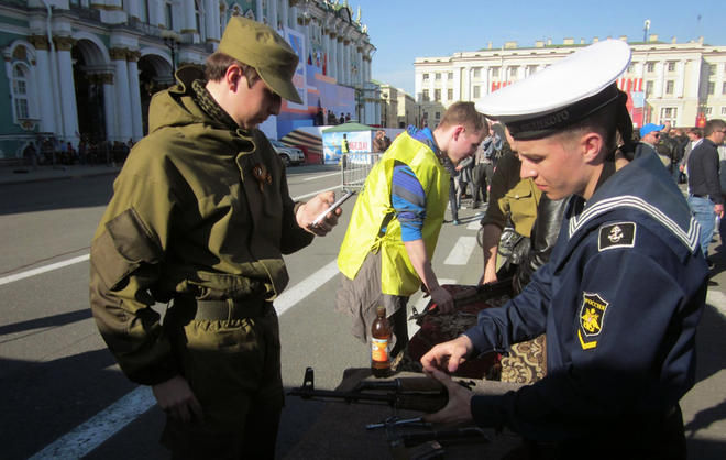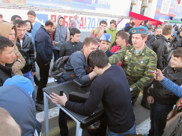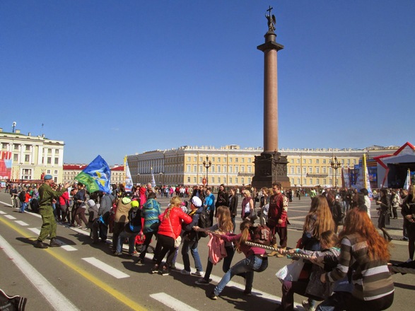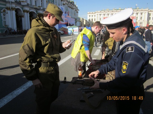 Представители нашей организации и ДОСААФ присутствовали на параде, затем прошли в колонне «Бессмертного полка», после чего организовали на Дворцовой площади спортивные состязания: пневматический тир, сборка-разборка автомата Калашникова, гиревой спорт, армреслинг и перетягивание каната. «Спортивный городок ДОСААФ» пользовался невероятным успехом у жителей и гостей Северной Пальмиры. Очередь на все спортивные места была нескончаемой. По армреслингу провели турнир, по окончании которого победителей наградили медалями.