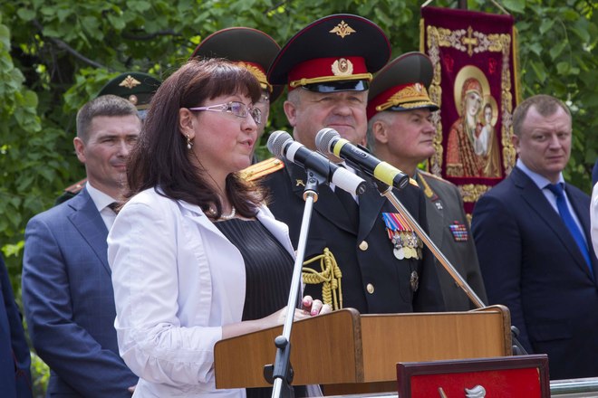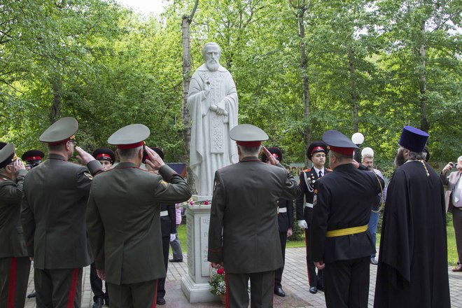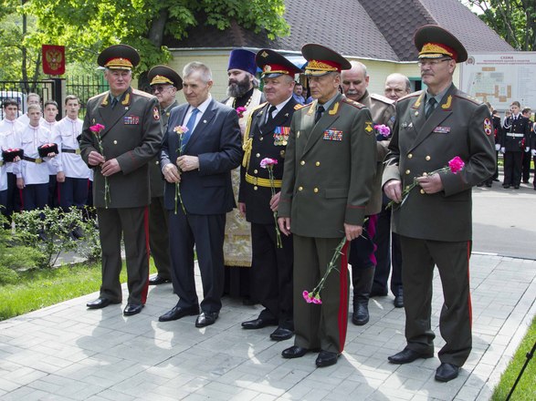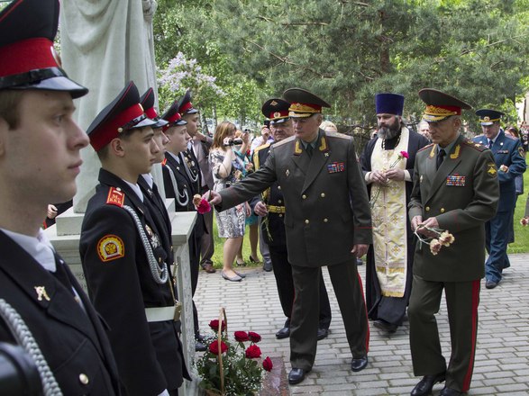 После слов поздравлений и напутствий, сказанных почетными гостями, кадеты перешли к памятнику преподобному Сергию Радонежскому, где настоятель Храма Святого Равноапостольного князя Владимира отец Марк прочел молитву и окропил всех святой водой. Мероприятие завершилось возложением цветов к памятникам Сергию Радонежскому и М.А. Шолохову.
