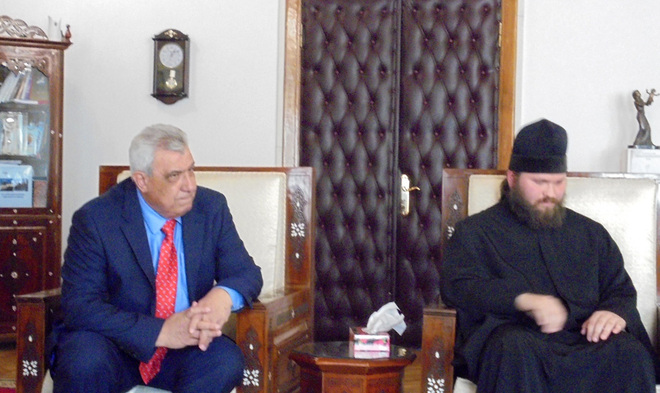 После церемонии возложения цветов к памятнику погибших, делегацию принял Чрезвычайный и Полномочный посол Сирийской Арабской Республики в РФ Рияд Хаддад.