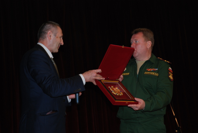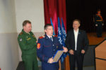 Руководитель исполкома Раменского местного отделения «ОФИЦЕРОВ РОССИИ» Вячеслав Коценко вручил коллективу памятный подарок – наградную казачью шашку, а представители МКО «Всевеликое войско Донское» – икону-барельеф «Неопалимая купина».
